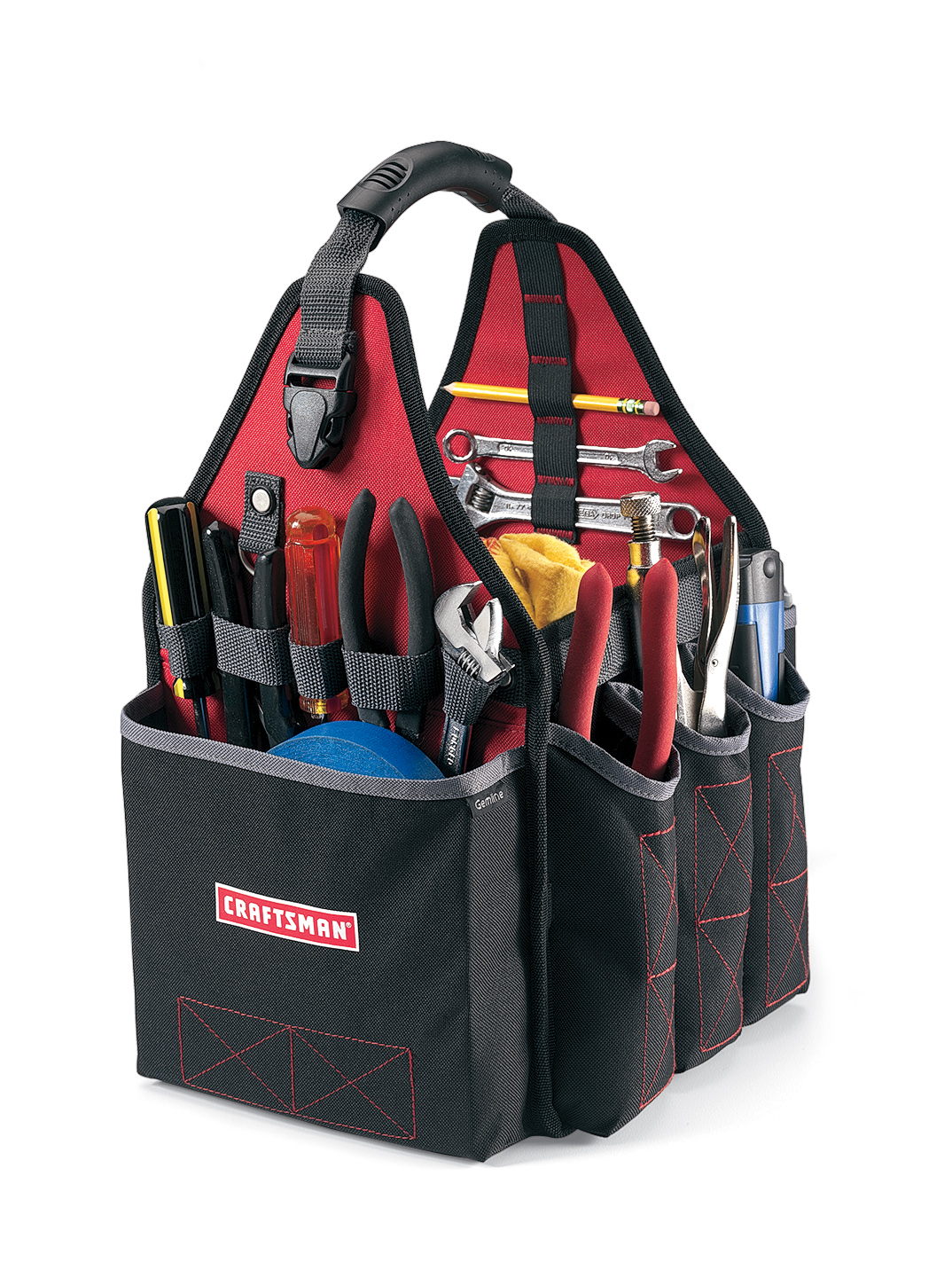 Build new business relationships with this custom imprinted All-Purpose Utility Case! Perfect for the garage, workshop or on the job, this item offers plenty of room to store and organize tools and accessories. Made of 600 denier polyester, features include a metal key fob, exterior clip to hook and secure tape measure, molded handle grip and side hook and loop pocket with plastic container. Please note: tape measure and tools are not included.